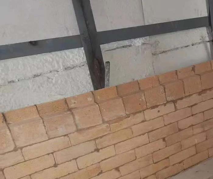為確保砌筑后砌體截面尺寸誤差在許可范圍內(nèi),有效消除外殼變形,應(yīng)先砌筑耐火磚,再砌筑IFB保溫磚。用13號保溫材料填充保溫磚與硅鈣板的間隙。