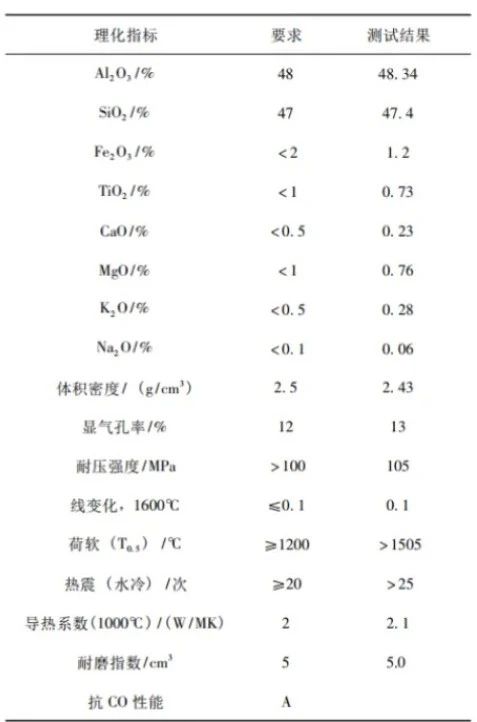 表1 氯化爐爐襯材料要求及測(cè)試分析結(jié)果