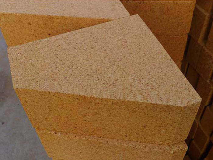 拱腳粘土磚是用50%的軟質粘土和50%硬質粘土熟料,按一定的粒度要求進行配料,經成型、干燥后,在1300~1400℃的高溫下燒成。粘土耐火磚屬于弱酸性耐火制品,能抵抗酸性熔渣和酸性氣體的侵蝕,對堿性物質的抵抗能力稍差。粘土磚的熱性能好,耐急冷急熱。