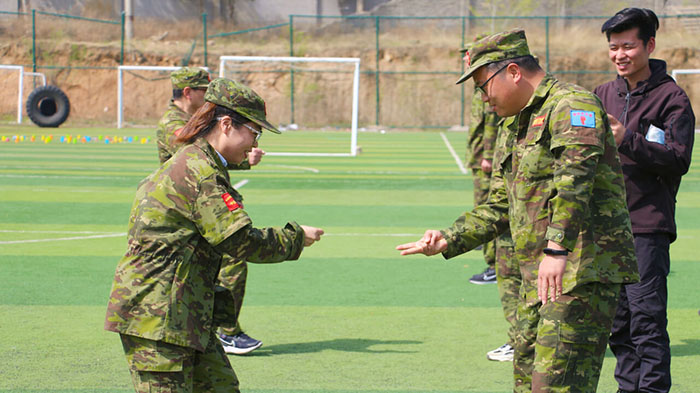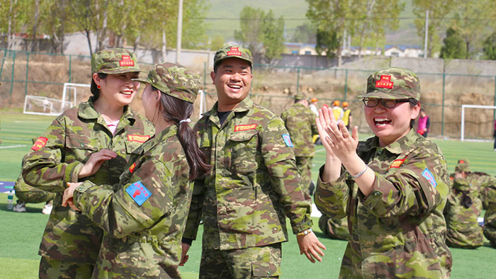 開(kāi)訓(xùn)前,在破冰啟航環(huán)節(jié)——【智勇通關(guān)】項(xiàng)目中,每組選一個(gè)大魔王來(lái)防守別隊(duì),該隊(duì)隊(duì)員依次挑戰(zhàn)大魔王,石頭剪刀布定輸贏,贏了直接通過(guò),輸了轉(zhuǎn)一圈,回來(lái)接著挑戰(zhàn),再輸即增加圈數(shù),直到全部隊(duì)員通過(guò)。大家把團(tuán)隊(duì)當(dāng)成了自己的“城堡”,在“對(duì)抗魔王”中,每個(gè)隊(duì)員都拼盡全力,期待被幸運(yùn)女神光顧,期待團(tuán)隊(duì)能盡早完成任務(wù),大家的歡笑聲、喝彩聲灑滿了訓(xùn)練場(chǎng)。