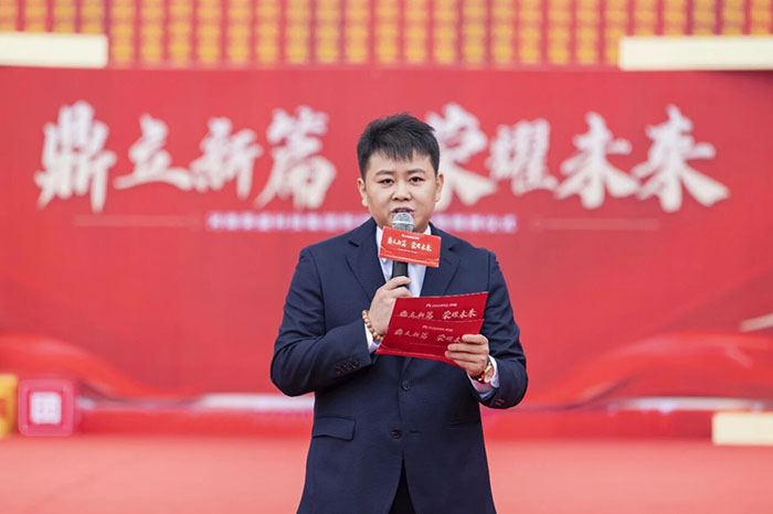 接下來(lái),原河南省商務(wù)廳二級(jí)巡視員孫琪發(fā)表致辭。孫廳指出,河南榮盛科技集團(tuán)作為我省材料工業(yè)領(lǐng)域的骨干企業(yè),多年來(lái)深耕主業(yè)、銳意進(jìn)取,為地方經(jīng)濟(jì)發(fā)展和耐火材料產(chǎn)業(yè)進(jìn)步作出了重要貢獻(xiàn)。他強(qiáng)調(diào),鄭州榮盛新材料有限公司的揭牌成立,是企業(yè)把握產(chǎn)業(yè)發(fā)展趨勢(shì)、推動(dòng)轉(zhuǎn)型升級(jí)的戰(zhàn)略舉措。面對(duì)耐火材料行業(yè)綠色低碳轉(zhuǎn)型的關(guān)鍵時(shí)期,孫廳充分肯定了榮盛集團(tuán)率先布局跨境電商渠道的前瞻性舉措。他表示,此舉有效打破傳統(tǒng)貿(mào)易壁壘,顯著提升了“河南耐材”在國(guó)際市場(chǎng)的競(jìng)爭(zhēng)力與影響力。展望未來(lái),孫廳希望新公司立足新起點(diǎn),勇?lián)率姑,?jiān)持以創(chuàng)新為驅(qū)動(dòng)、以市場(chǎng)為導(dǎo)向,充分發(fā)揮集團(tuán)技術(shù)優(yōu)勢(shì)與產(chǎn)業(yè)基礎(chǔ),加快打造國(guó)際化品牌,為推動(dòng)河南耐火材料產(chǎn)業(yè)高質(zhì)量發(fā)展樹(shù)立新標(biāo)桿、作出新示范。