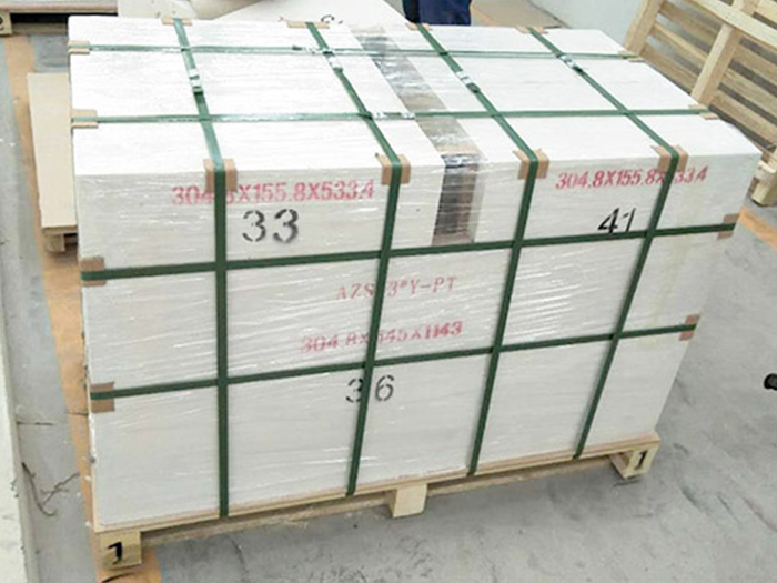 廣泛應用在玻璃窯爐工作池及以后部位,通常使用部位是溜槽、唇磚、閘板磚等。