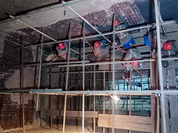 湖北循環(huán)流化床鍋爐耐火材料內(nèi)襯施工現(xiàn)場(chǎng)