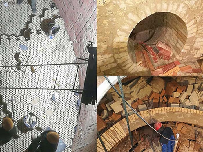 - 原襯里狀態(tài):高鋁磚(Al₂O₃≥75%)局部剝落≥30%,錨固件銹蝕率>40%