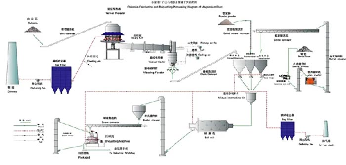 金屬鎂生產(chǎn)工藝流程介紹 http://www.segarahospitality.com/cpzs/1944.html 金屬鎂生產(chǎn)工藝流程概述:白云石由破碎機(jī)破碎合格的物料(30-40mm),用回轉(zhuǎn)窯燒結(jié),煅燒成煅白,經(jīng)冷卻機(jī)冷卻,再經(jīng)過球磨機(jī)磨成粉,再經(jīng)壓球機(jī)壓成球,經(jīng)破碎后與硅鐵粉(含硅75%)和螢石粉(含GaF2)=95%混合均勻制成團(tuán),裝入耐熱不銹鋼還原罐內(nèi),置于還原爐中,在1200-1250℃及真空的1.33Pa真空度下還原制取粗鎂,經(jīng)過溶劑精制、鑄錠、表面處理得到成品鎂錠。